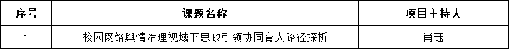 根据关于申报2026年度湖北省思想政治工作研究课题的通知(教务通知【2026】21号 )要求、经成果负责人申报、二级学院推荐、教务部审核、校内专家匿名评审、现将评选结果予以公示。公示如下: